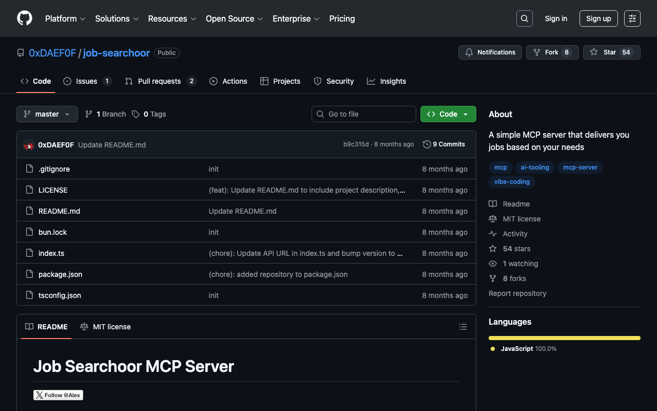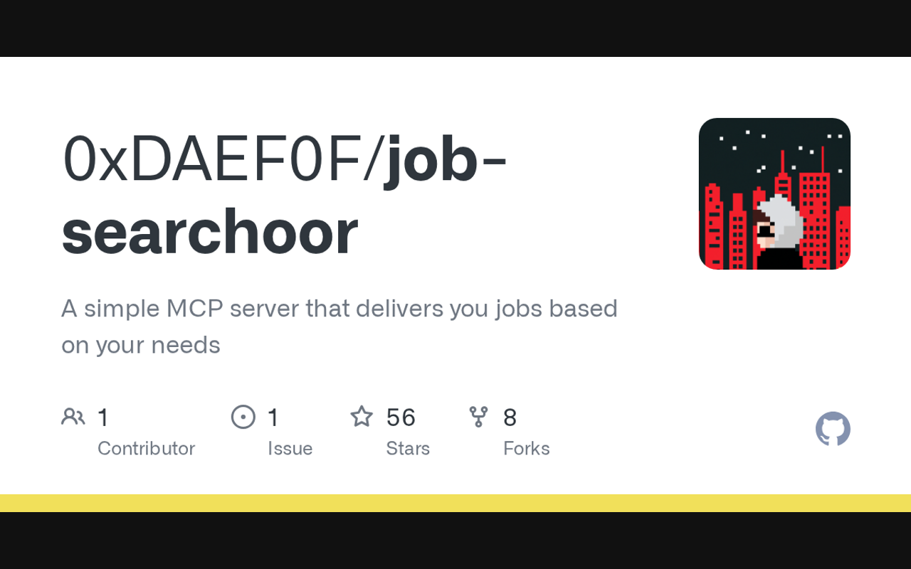 Extend Claude with 0xdaef0f job searchoor capabilitiesIntegrate external data into AI conversationsAutomate workflows combining Claude with specialized servicesBuild custom AI-powered development tools