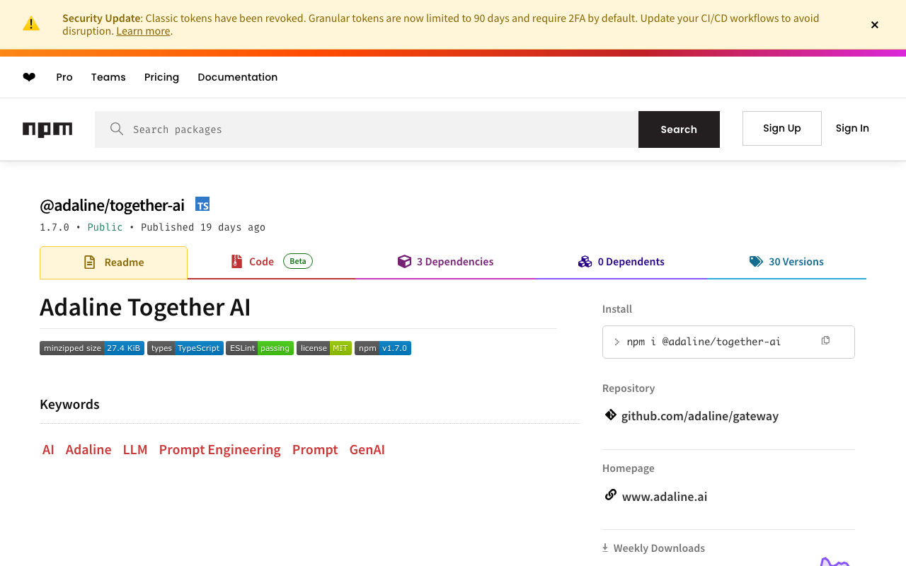 SDK library for @adaline/together ai. Provides programmatic access to AI capabilities with type-safe interfaces and helper utilities.
