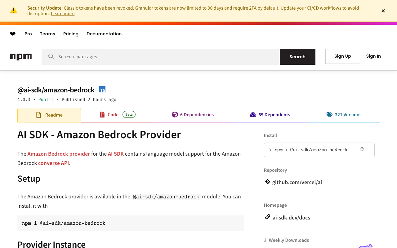 The **[Amazon Bedrock provider](https://ai-sdk.dev/providers/ai-sdk-providers/amazon-bedrock)** for the [AI SDK](https://ai-sdk.dev/docs) contains language model support for the Amazon Bedrock [converse API](https://docs.aws.amazon.com/bedrock/latest/APIR
