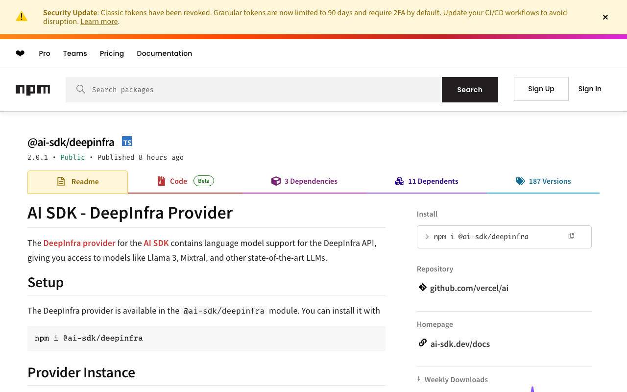 The **[DeepInfra provider](https://ai-sdk.dev/providers/ai-sdk-providers/deepinfra)** for the [AI SDK](https://ai-sdk.dev/docs) contains language model support for the DeepInfra API, giving you access to models like Llama 3, Mixtral, and other state-of-th