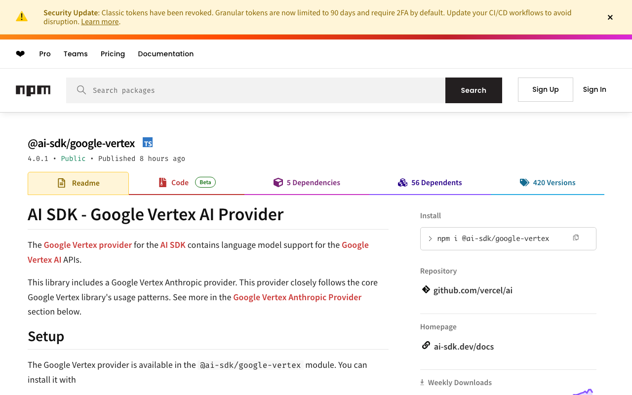 The **[Google Vertex provider](https://ai-sdk.dev/providers/ai-sdk-providers/google-vertex)** for the [AI SDK](https://ai-sdk.dev/docs) contains language model support for the [Google Vertex AI](https://cloud.google.com/vertex-ai) APIs.
