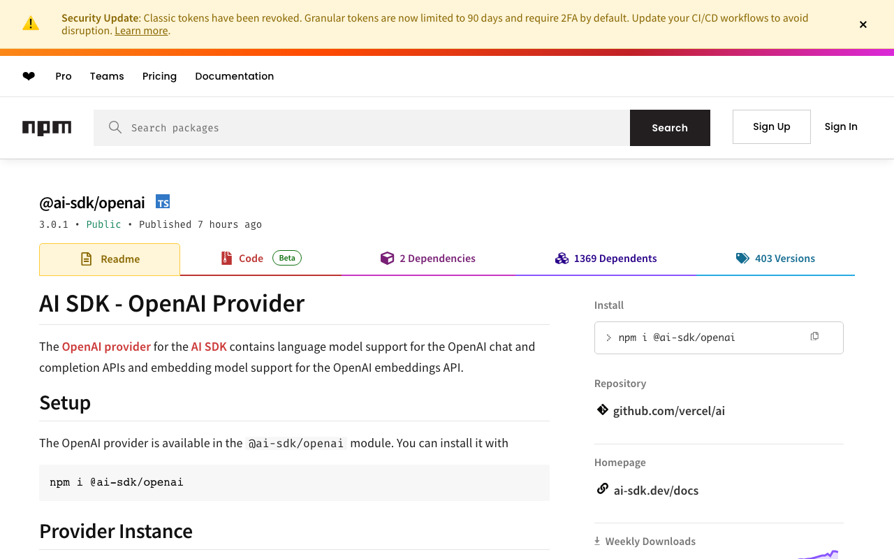 The **[OpenAI provider](https://ai-sdk.dev/providers/ai-sdk-providers/openai)** for the [AI SDK](https://ai-sdk.dev/docs) contains language model support for the OpenAI chat and completion APIs and embedding model support for the OpenAI embeddings API.