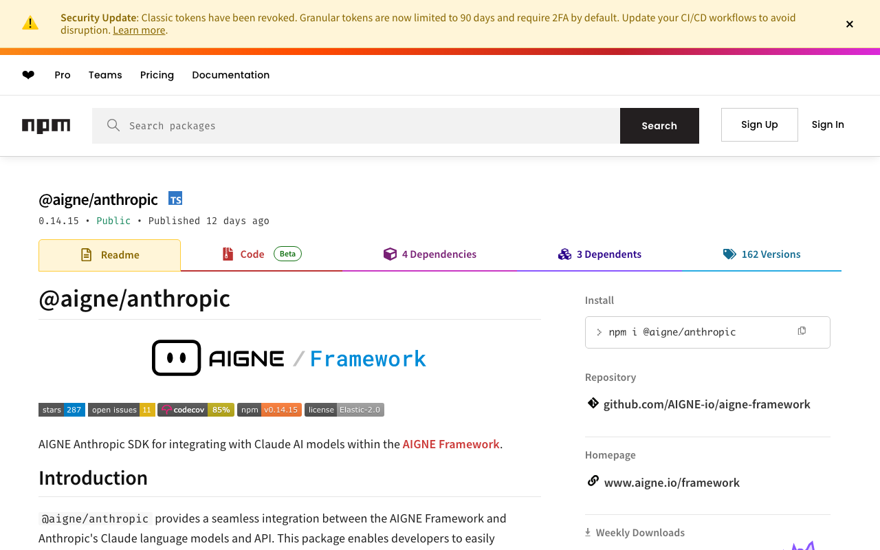 AIGNE Anthropic SDK for integrating with Claude AI models