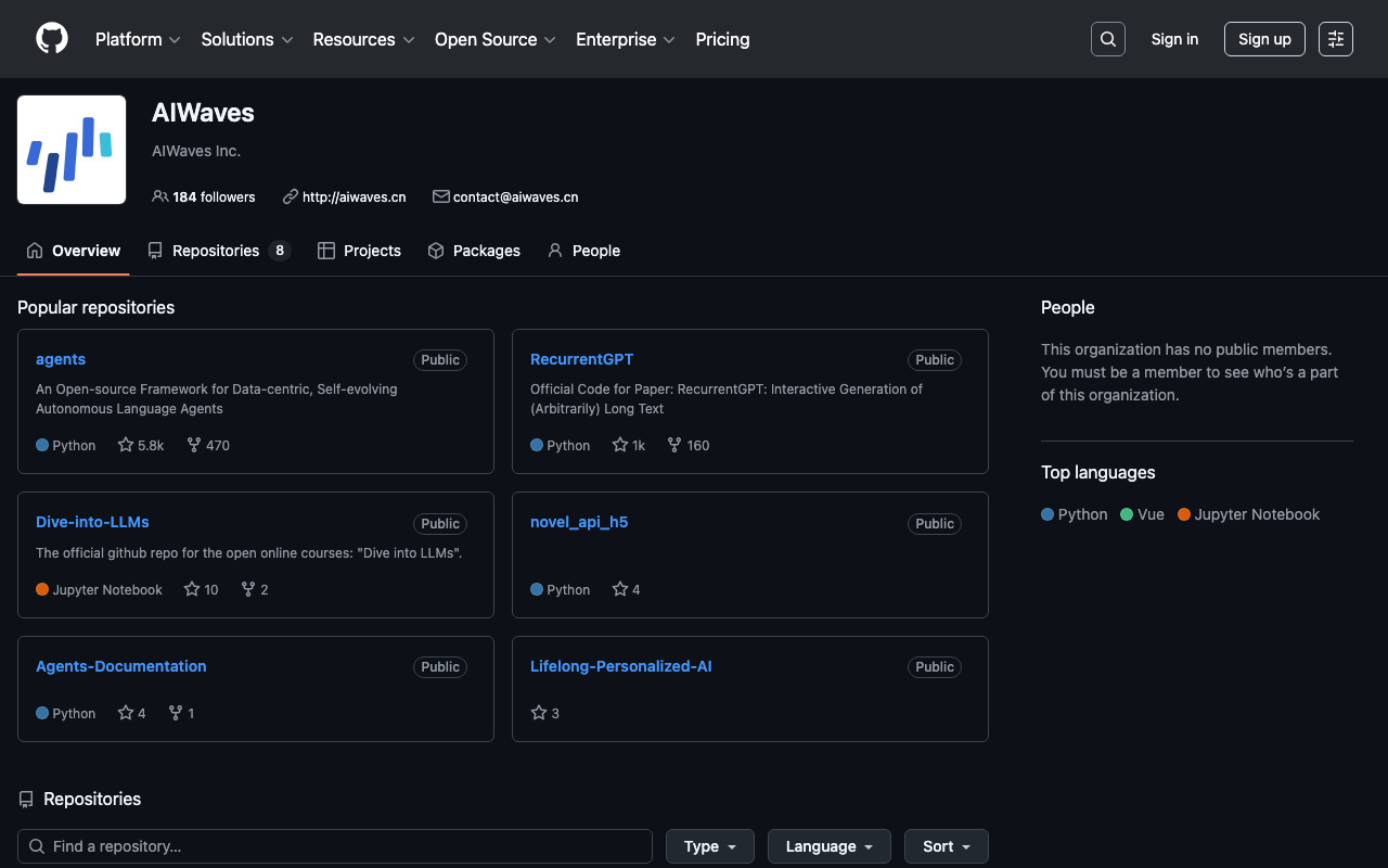 AI agent framework for AIWaves Inc.. Enables autonomous task execution and multi-step reasoning with LLM-powered decision making.