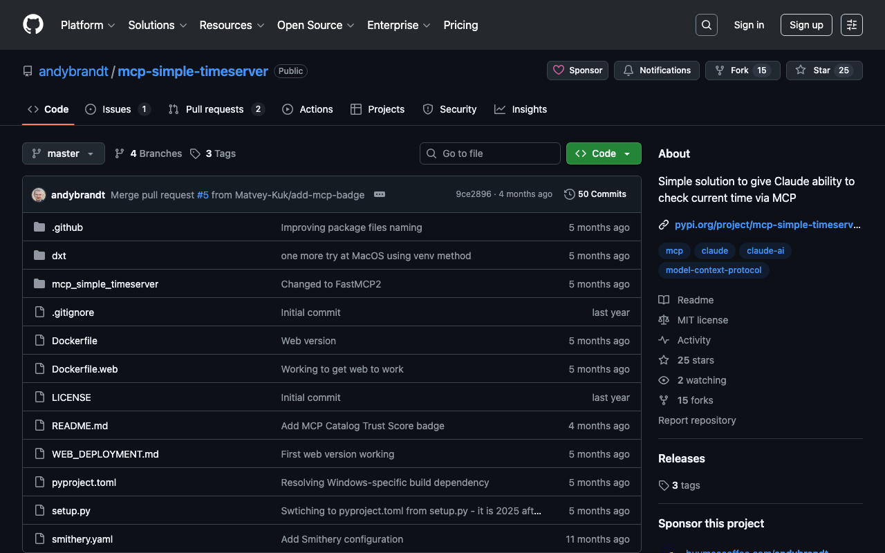 Extend Claude with andybrandt mcp simple timeserver capabilitiesIntegrate external data into AI conversationsAutomate workflows combining Claude with specialized servicesBuild custom AI-powered development tools