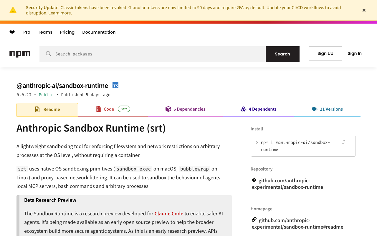 Anthropic Sandbox Runtime (ASRT) - A general-purpose tool for wrapping security boundaries around arbitrary processes