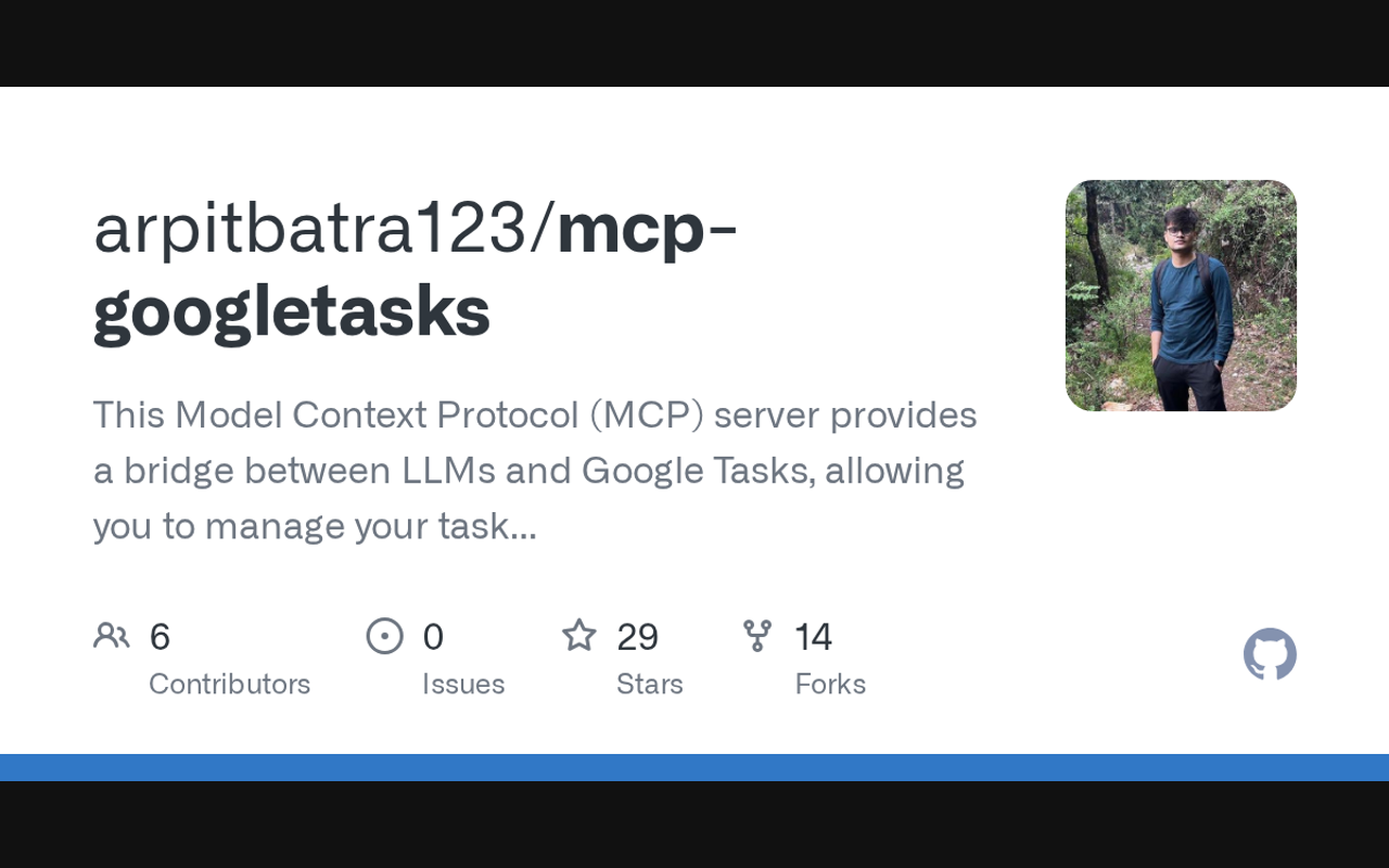 Extend Claude with arpitbatra123 mcp googletasks capabilitiesIntegrate external data into AI conversationsAutomate workflows combining Claude with specialized servicesBuild custom AI-powered development tools