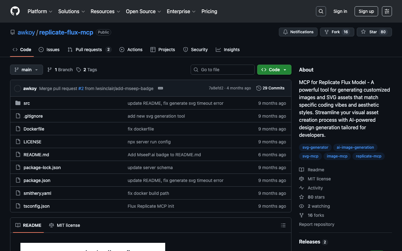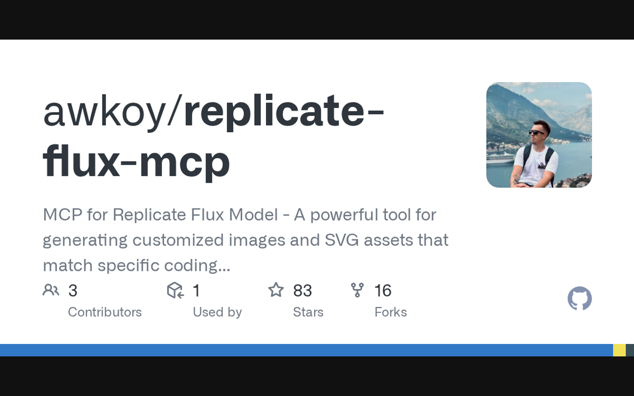 MCP for Replicate Flux Model - A powerful tool for generating customized images and SVG assets that match specific coding vibes and aesthetic styles. Streamline your visual asset creation process with AI-powered design generation tailored for developers.