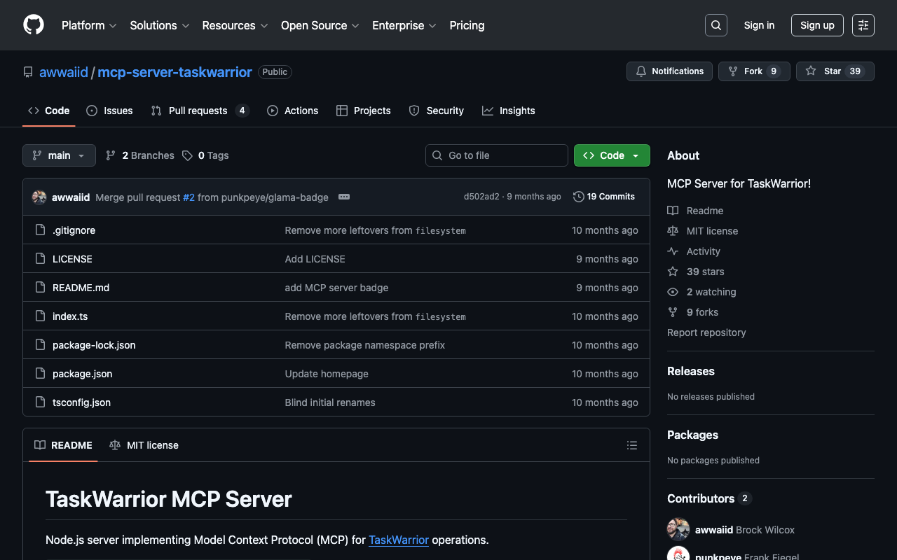 Extend Claude with awwaiid mcp server taskwarrior capabilitiesIntegrate external data into AI conversationsAutomate workflows combining Claude with specialized servicesBuild custom AI-powered development tools