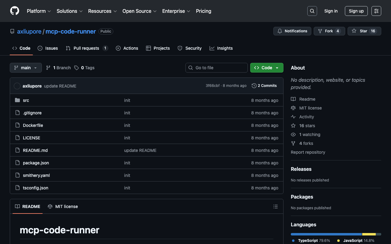 MCP server that extends Claude's capabilities with axliupore/MCP code runner integration. Enables seamless interaction between Claude and axliupore/MCP code runner services through the Model Context Protocol.
