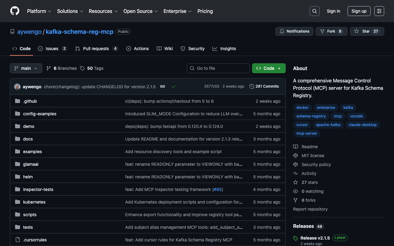 Extend Claude with aywengo kafka schema reg mcp capabilitiesIntegrate external data into AI conversationsAutomate workflows combining Claude with specialized servicesBuild custom AI-powered development tools
