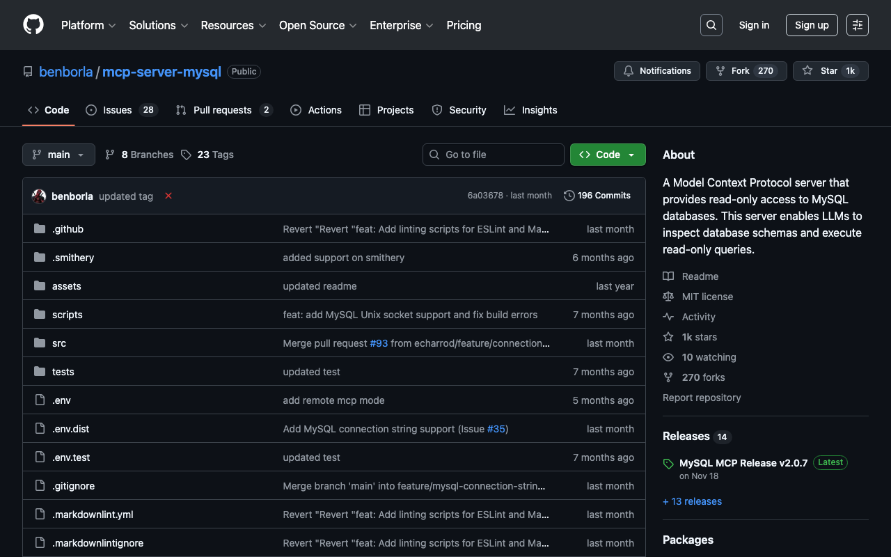 Extend Claude with benborla29 mcp server mysql capabilitiesIntegrate external data into AI conversationsAutomate workflows combining Claude with specialized servicesBuild custom AI-powered development tools
