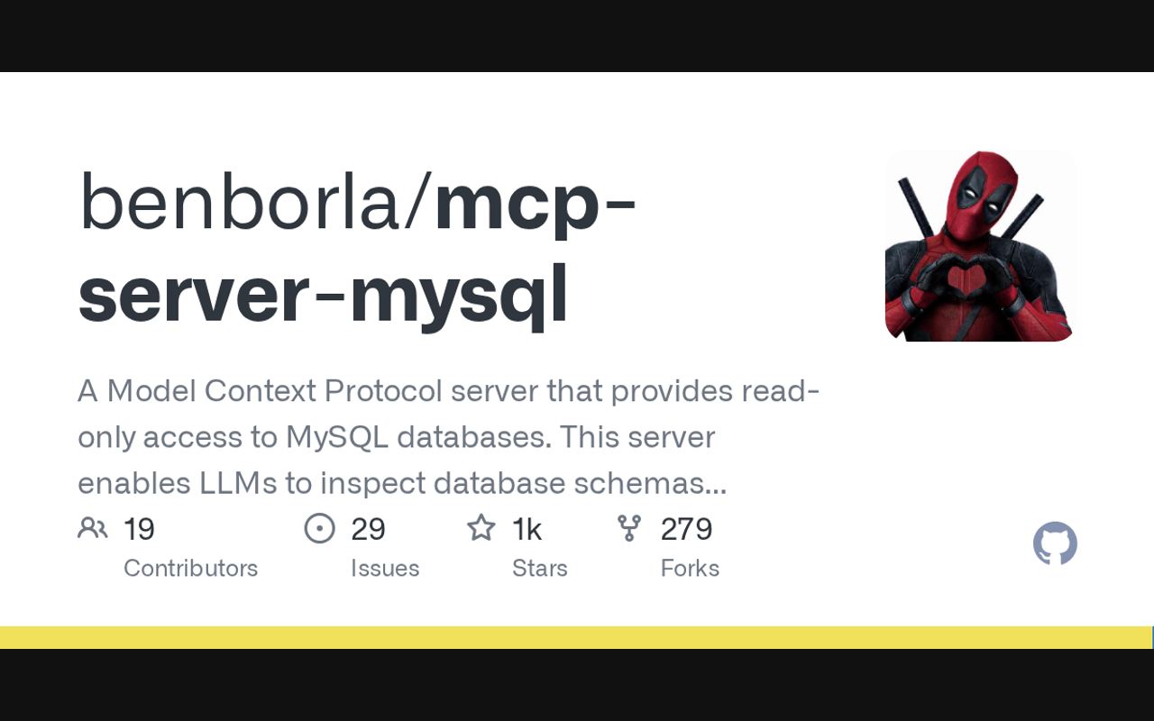 A Model Context Protocol server that provides read-only access to MySQL databases. This server enables LLMs to inspect database schemas and execute read-only queries.