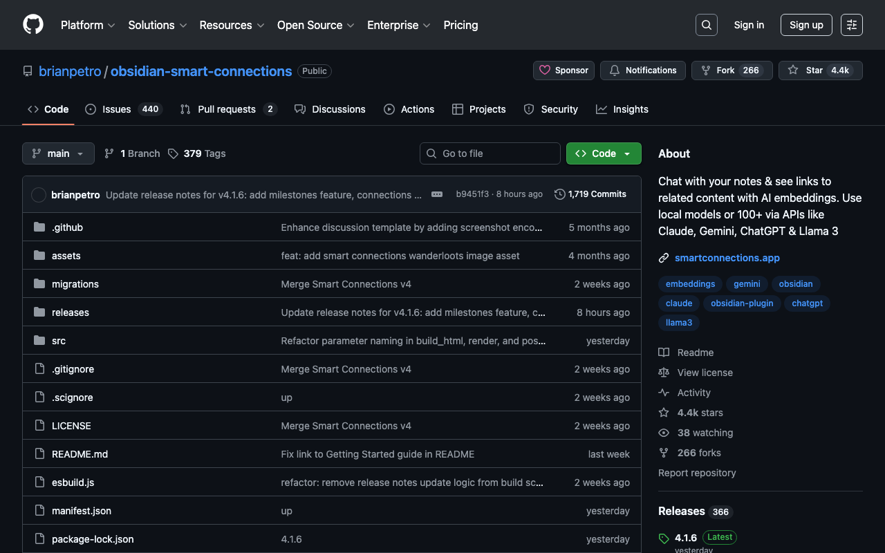 Chat with your notes & see links to related content with AI embeddings. Use local models or 100+ via APIs like Claude, Gemini, ChatGPT & Llama 3