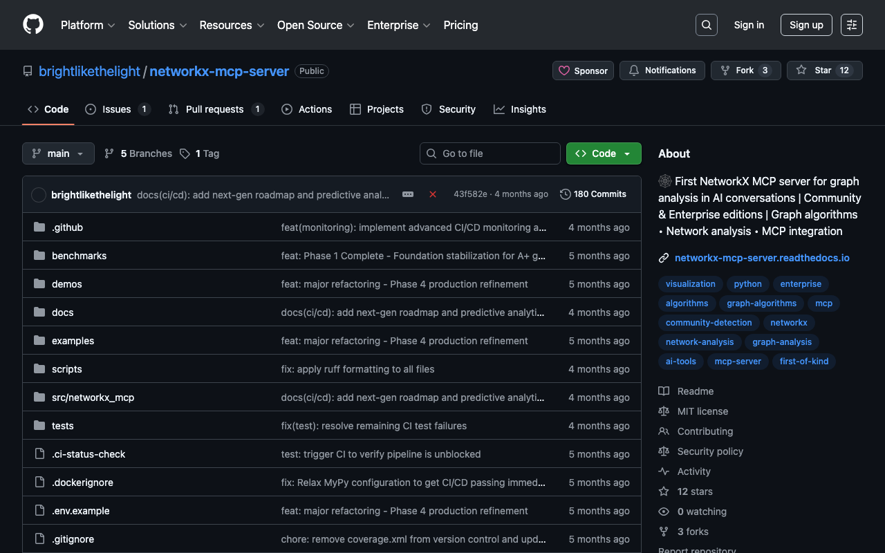 πΈοΈ First NetworkX MCP server for graph analysis in AI conversations | Community & Enterprise editions | Graph algorithms β’ Network analysis β’ MCP integration
