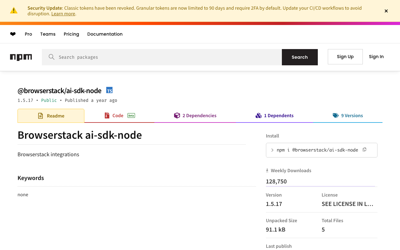 SDK library for @browserstack/ai sdk node. Provides programmatic access to AI capabilities with type-safe interfaces and helper utilities.