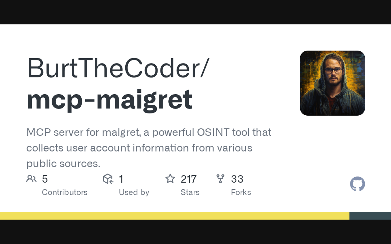 Extend Claude with BurtTheCoder mcp maigret capabilitiesIntegrate external data into AI conversationsAutomate workflows combining Claude with specialized servicesBuild custom AI-powered development tools