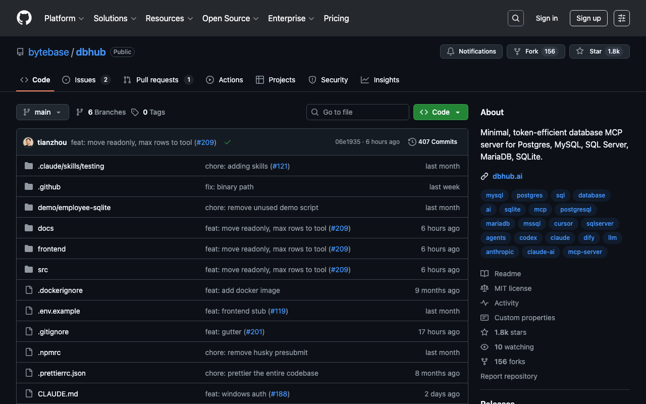 Minimal, token-efficient database MCP server for Postgres, MySQL, SQL Server, MariaDB, SQLite.