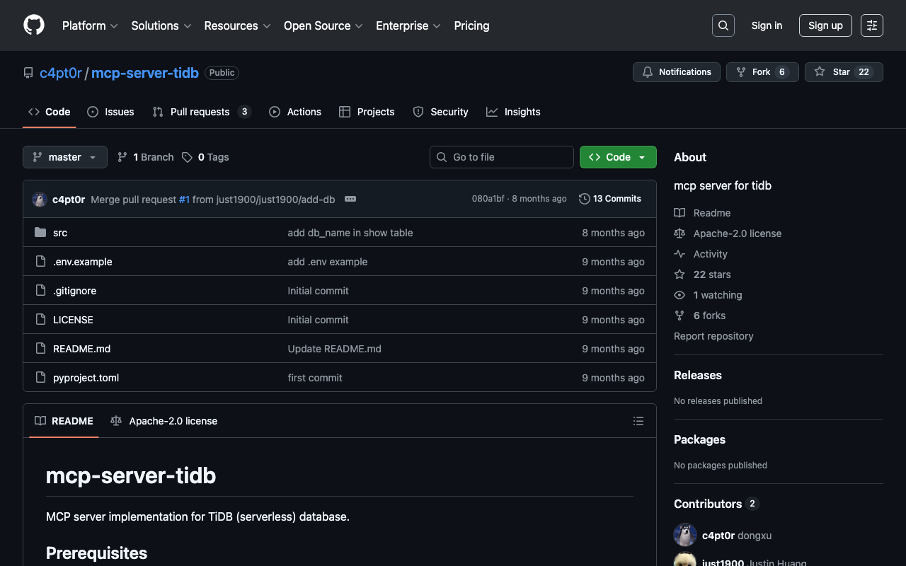 MCP server that extends Claude's capabilities with c4pt0r/MCP server tidb integration. Enables seamless interaction between Claude and c4pt0r/MCP server tidb services through the Model Context Protocol.