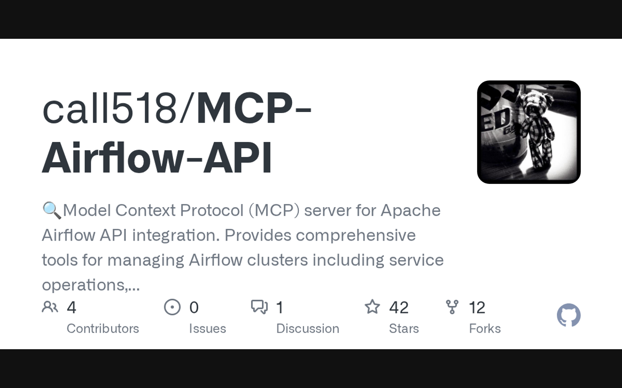 Model Context Protocol (MCP) server for Apache Airflow API integration. Provides comprehensive tools for managing Airflow clusters including service operations, configuration management, status monitoring, and request tracking.