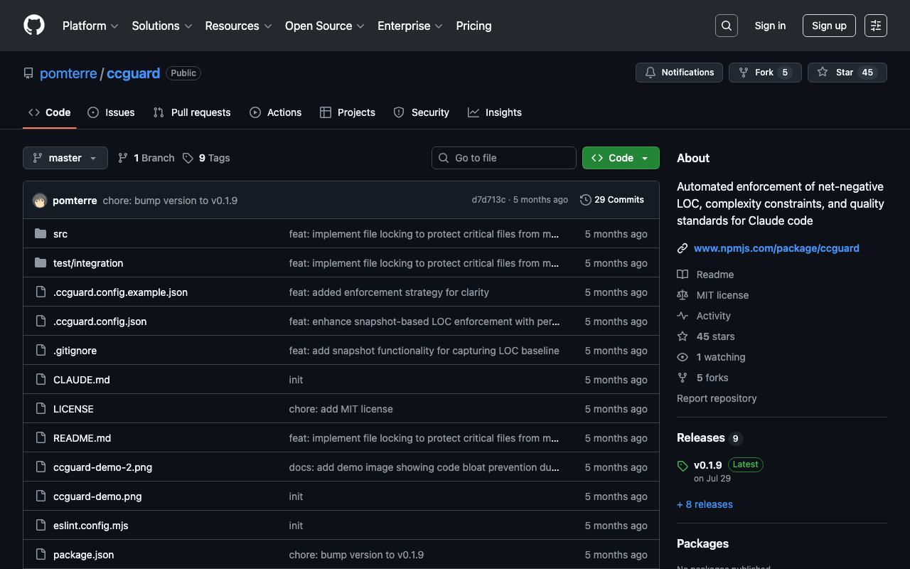 Automated enforcement of net-negative LOC, complexity constraints, and quality standards for Claude code