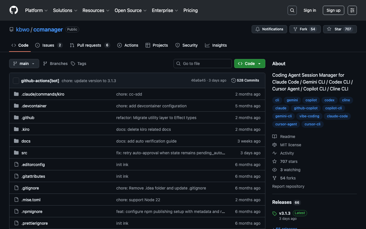Coding Agent Session Manager for Claude Code / Gemini CLI / Codex CLI / Cursor Agent / Copilot CLI / Cline CLI