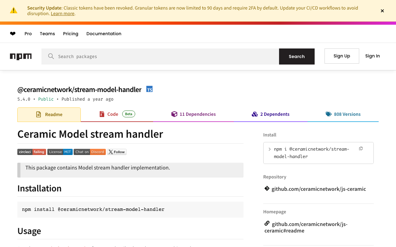 @ceramicnetwork/stream-model-handler | Claude Insider Resources