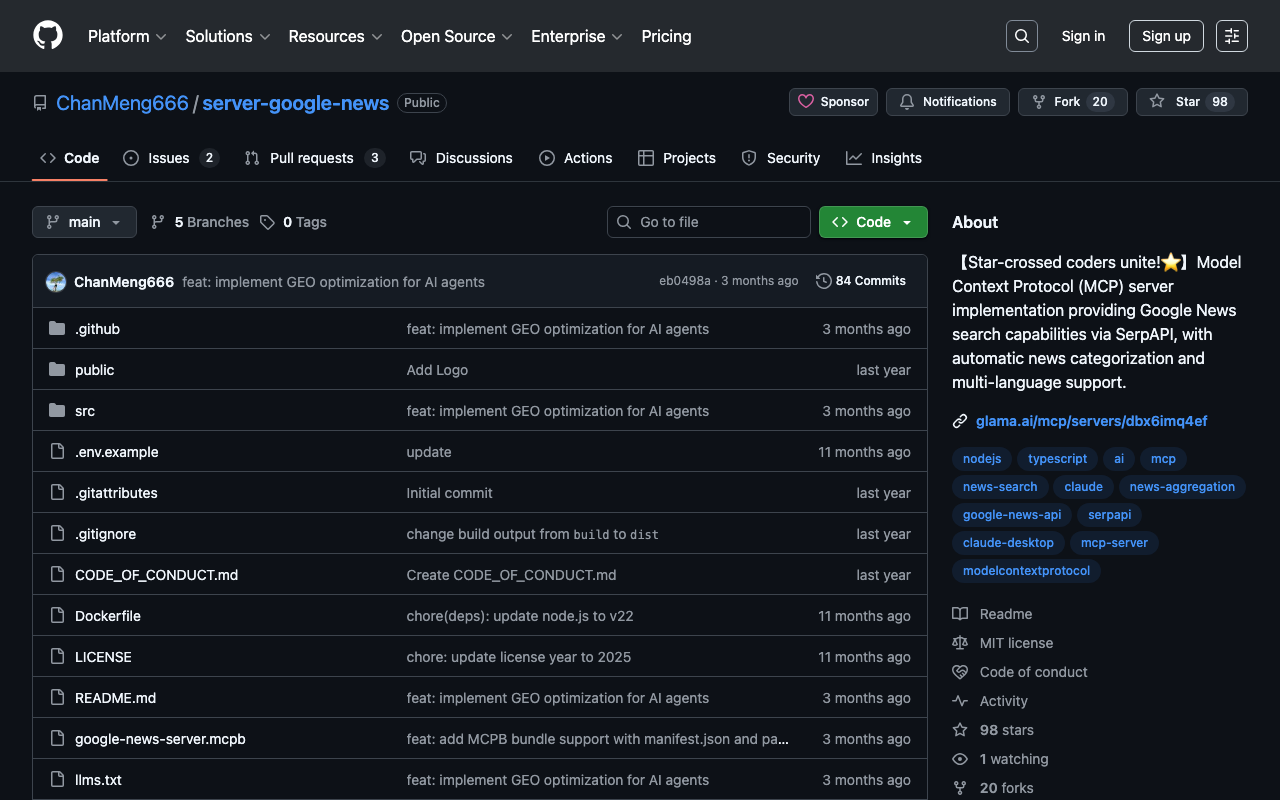 【Star-crossed coders unite!⭐️】Model Context Protocol (MCP) server implementation providing Google News search capabilities via SerpAPI, with automatic news categorization and multi-language support.