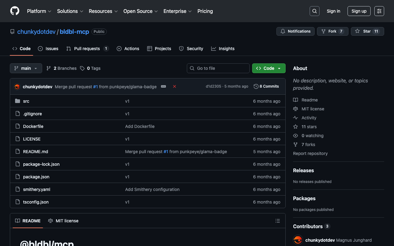 MCP server that extends Claude's capabilities with Chunkydotdev/bldbl MCP integration. Enables seamless interaction between Claude and Chunkydotdev/bldbl MCP services through the Model Context Protocol.