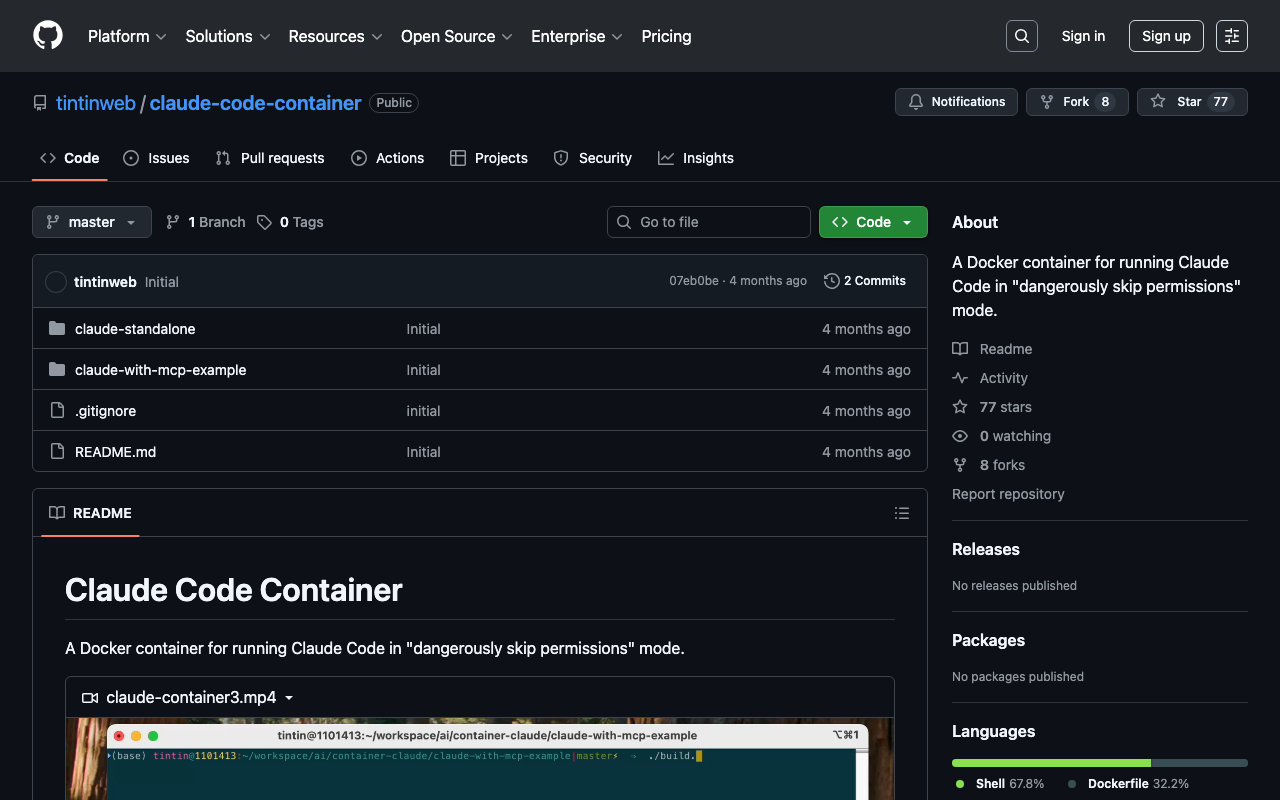 A Docker container for running Claude Code in "dangerously skip permissions" mode.