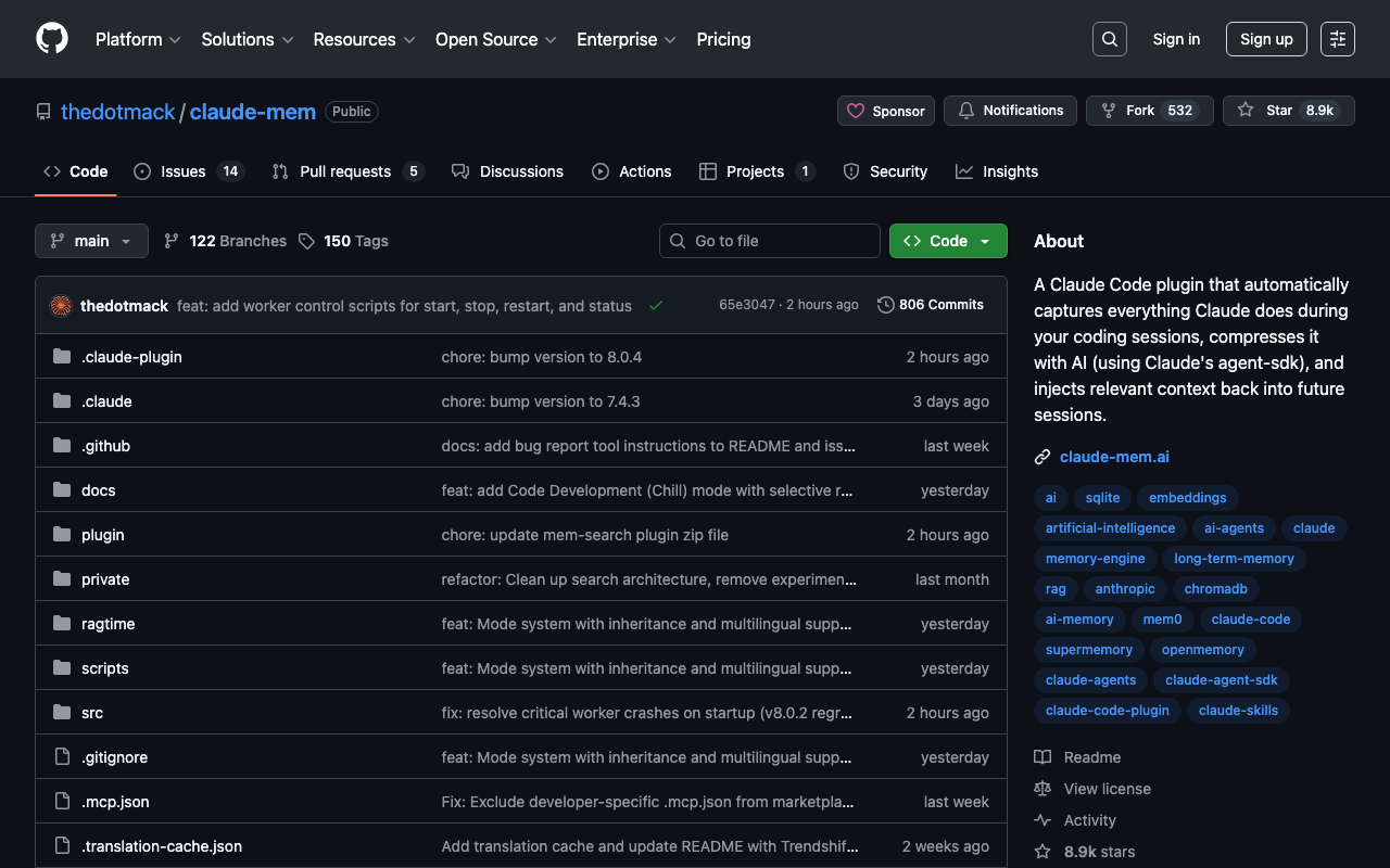 A Claude Code plugin that automatically captures everything Claude does during your coding sessions, compresses it with AI (using Claude's agent-sdk), and injects relevant context back into future sessions.