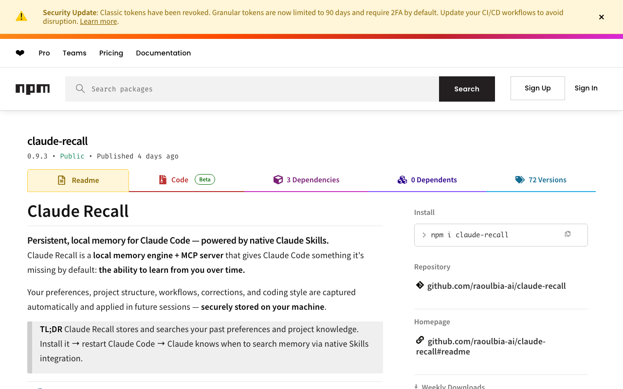 Persistent memory for Claude Code with native Skills integration, automatic capture, failure learning, and project scoping via MCP server