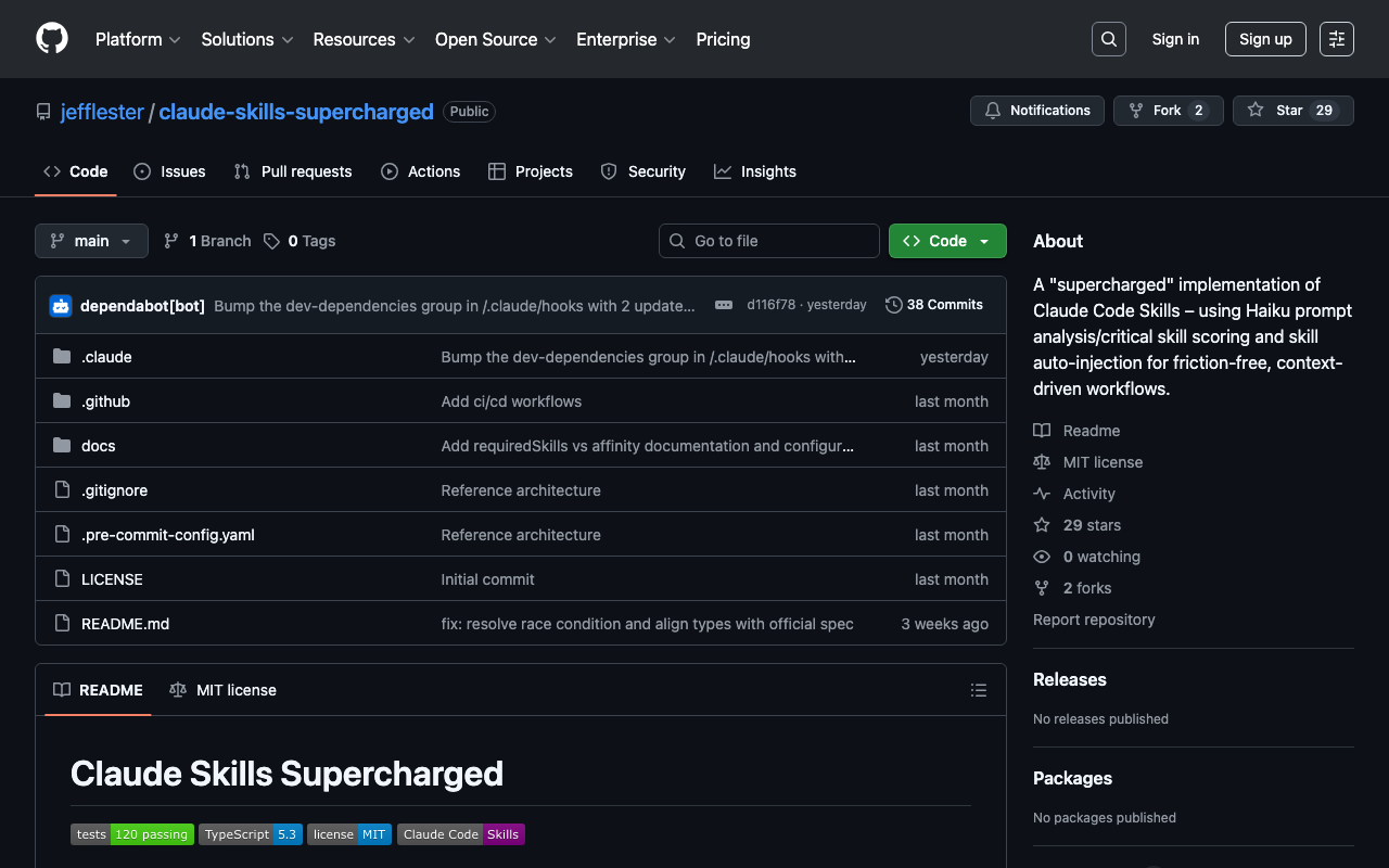A "supercharged" implementation of Claude Code Skills – using Haiku prompt analysis/critical skill scoring and skill auto-injection for friction-free, context-driven workflows.