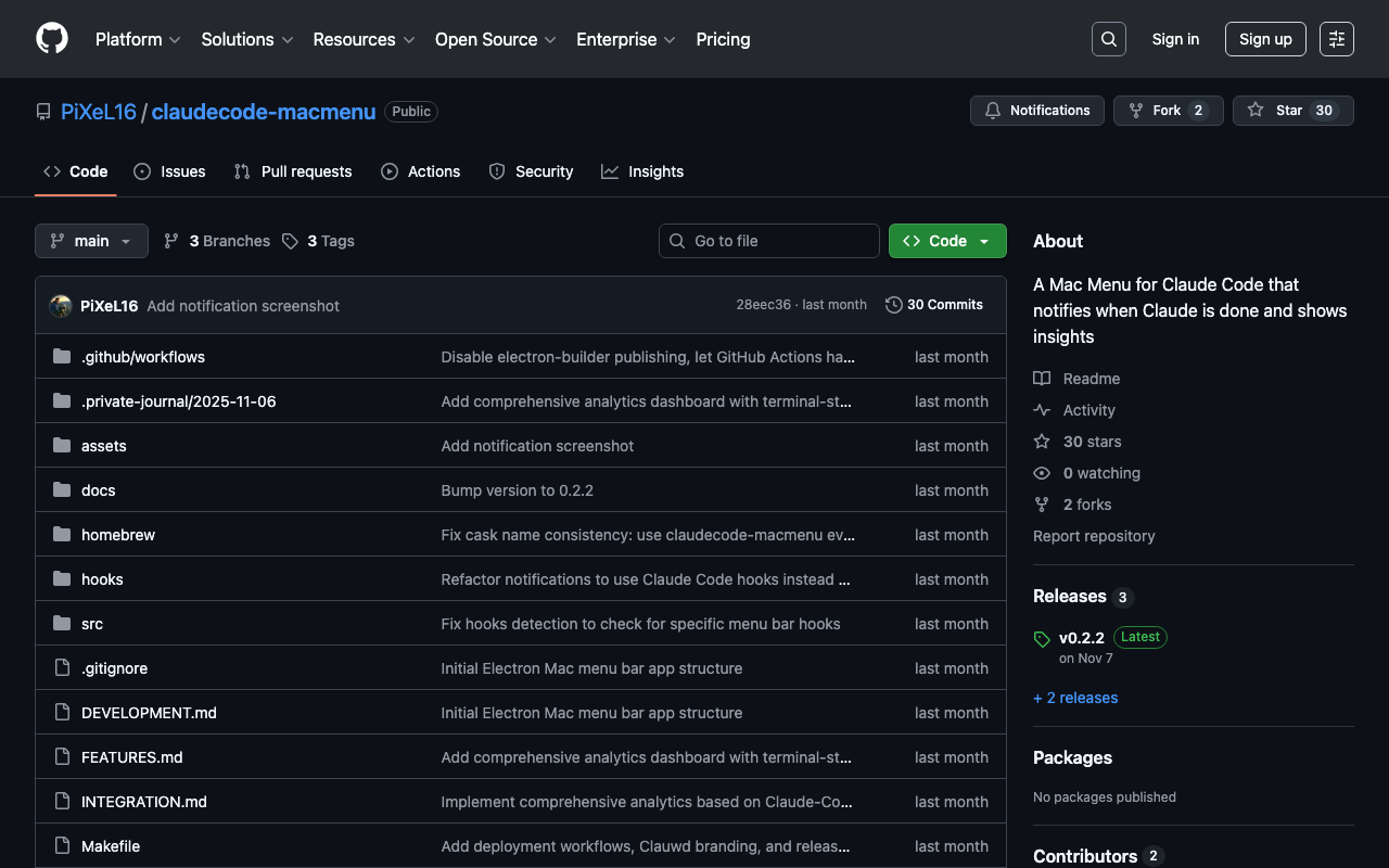 A Mac Menu for Claude Code that notifies when Claude is done and shows insights