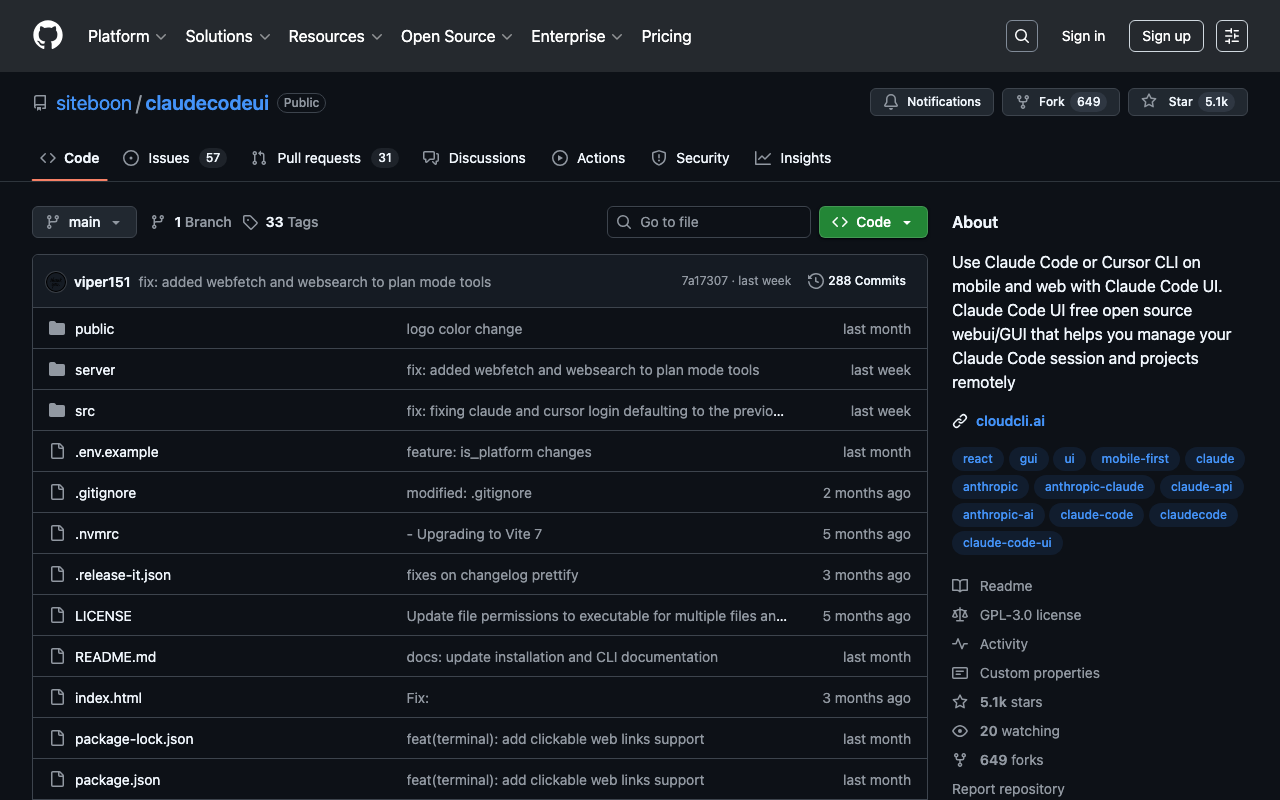 Use Claude Code or Cursor CLI on mobile and web with Claude Code UI. Claude Code UI free open source webui/GUI that helps you manage your Claude Code session and projects remotely