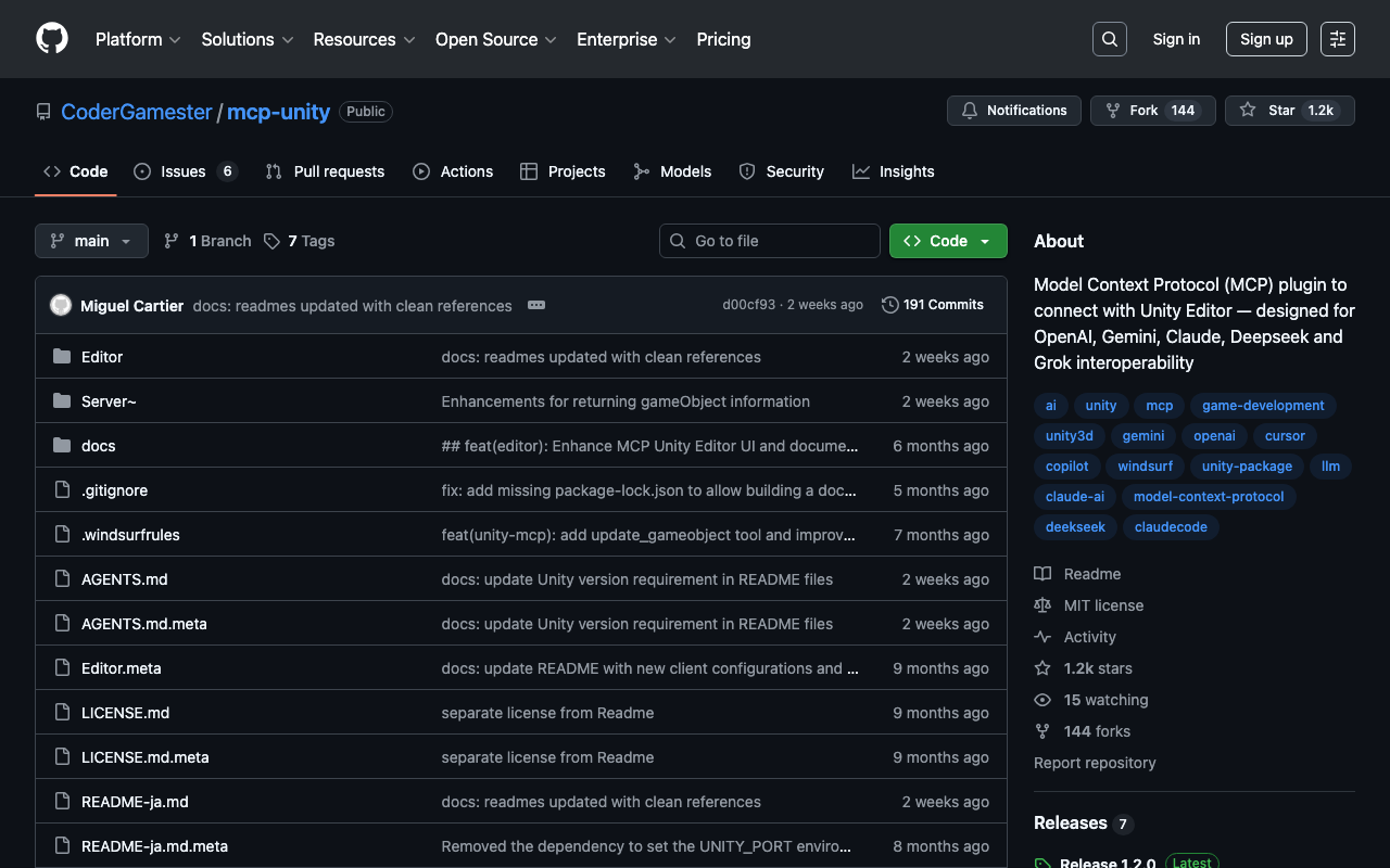 Extend Claude with CoderGamester mcp unity capabilitiesIntegrate external data into AI conversationsAutomate workflows combining Claude with specialized servicesBuild custom AI-powered development tools
