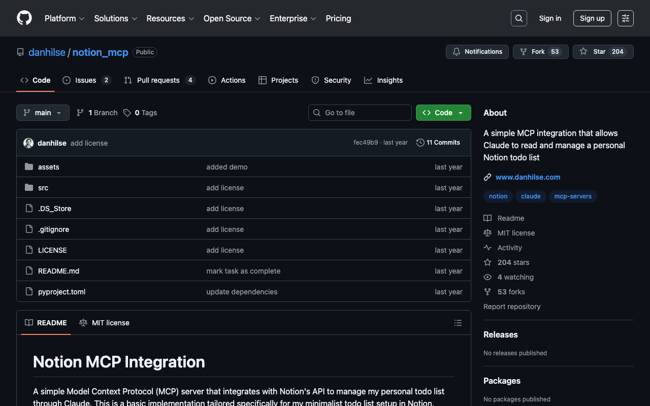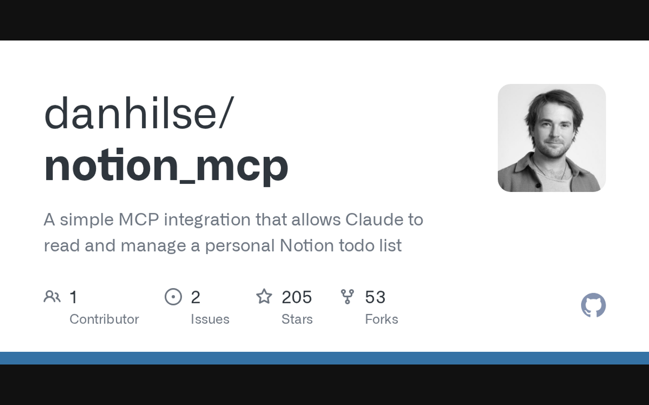 Extend Claude with danhilse notion mcp capabilitiesIntegrate external data into AI conversationsAutomate workflows combining Claude with specialized servicesBuild custom AI-powered development tools