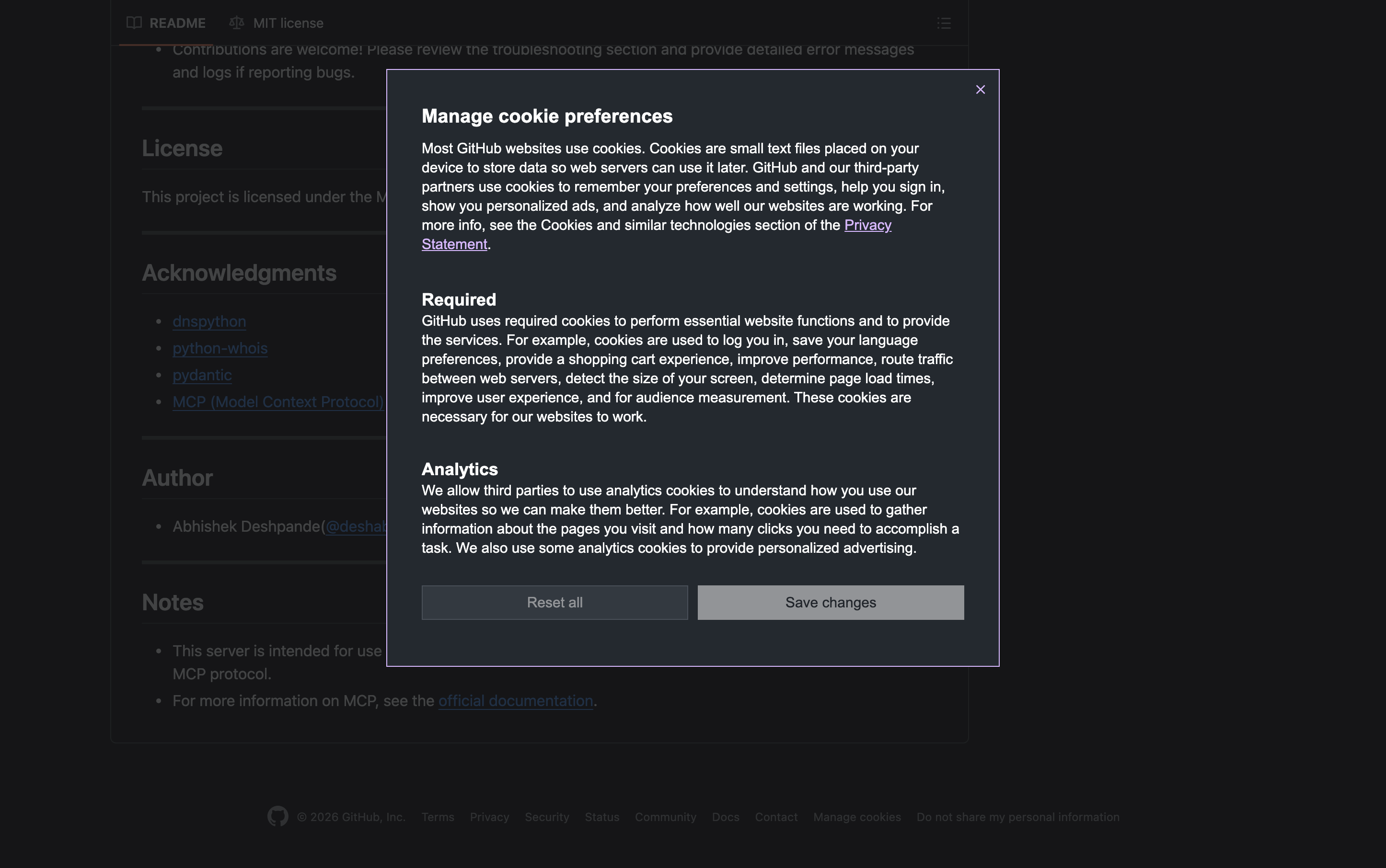 A Model Context Protocol (MCP) server for comprehensive domain analysis: WHOIS, DNS records, and DNS health checks.