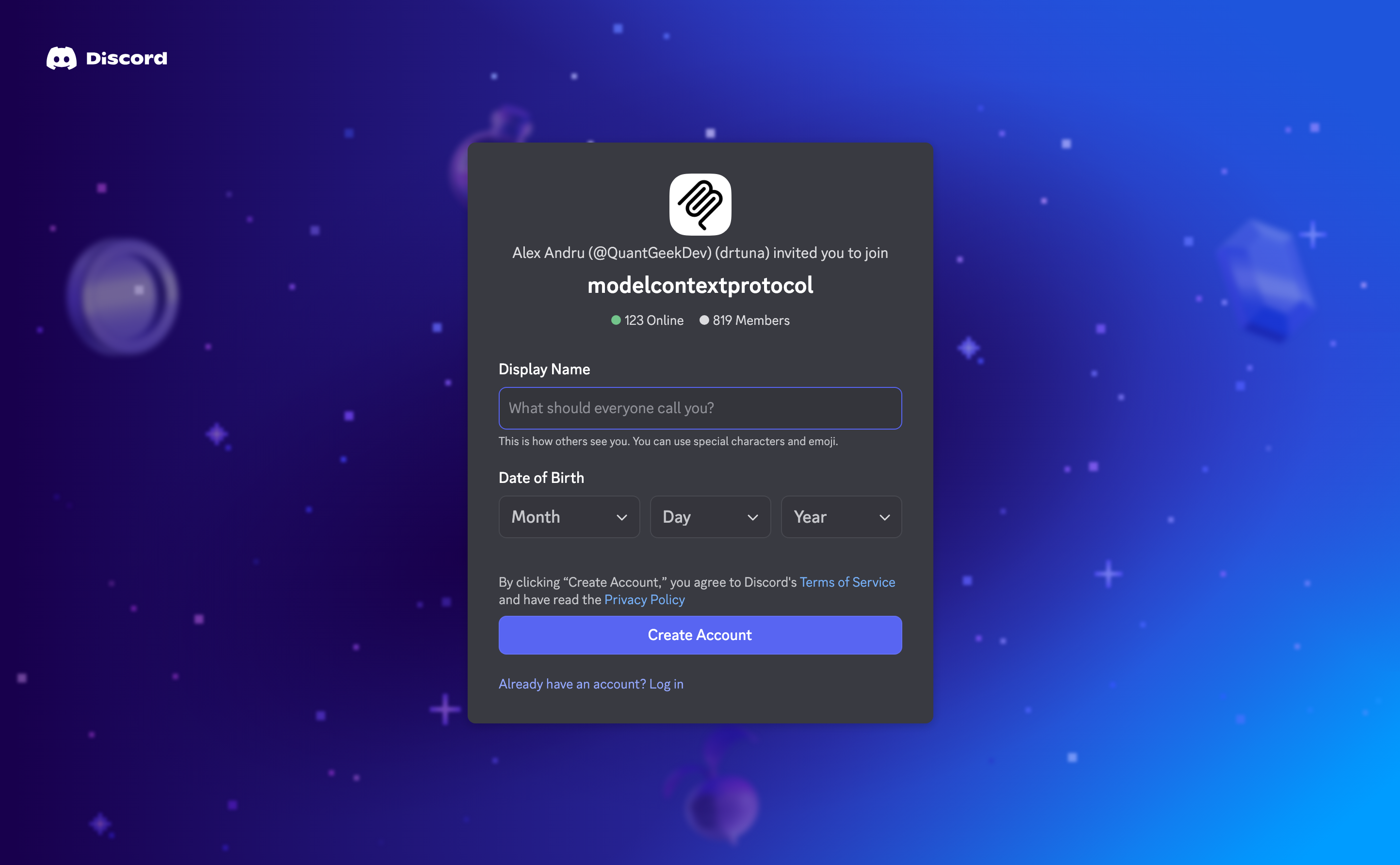 Connect with developers, share insights, and collaborate on projects in an active Discord community dedicated to the Model Context Protocol by **[Alex Andru](https://github.com/QuantGeekDev)**