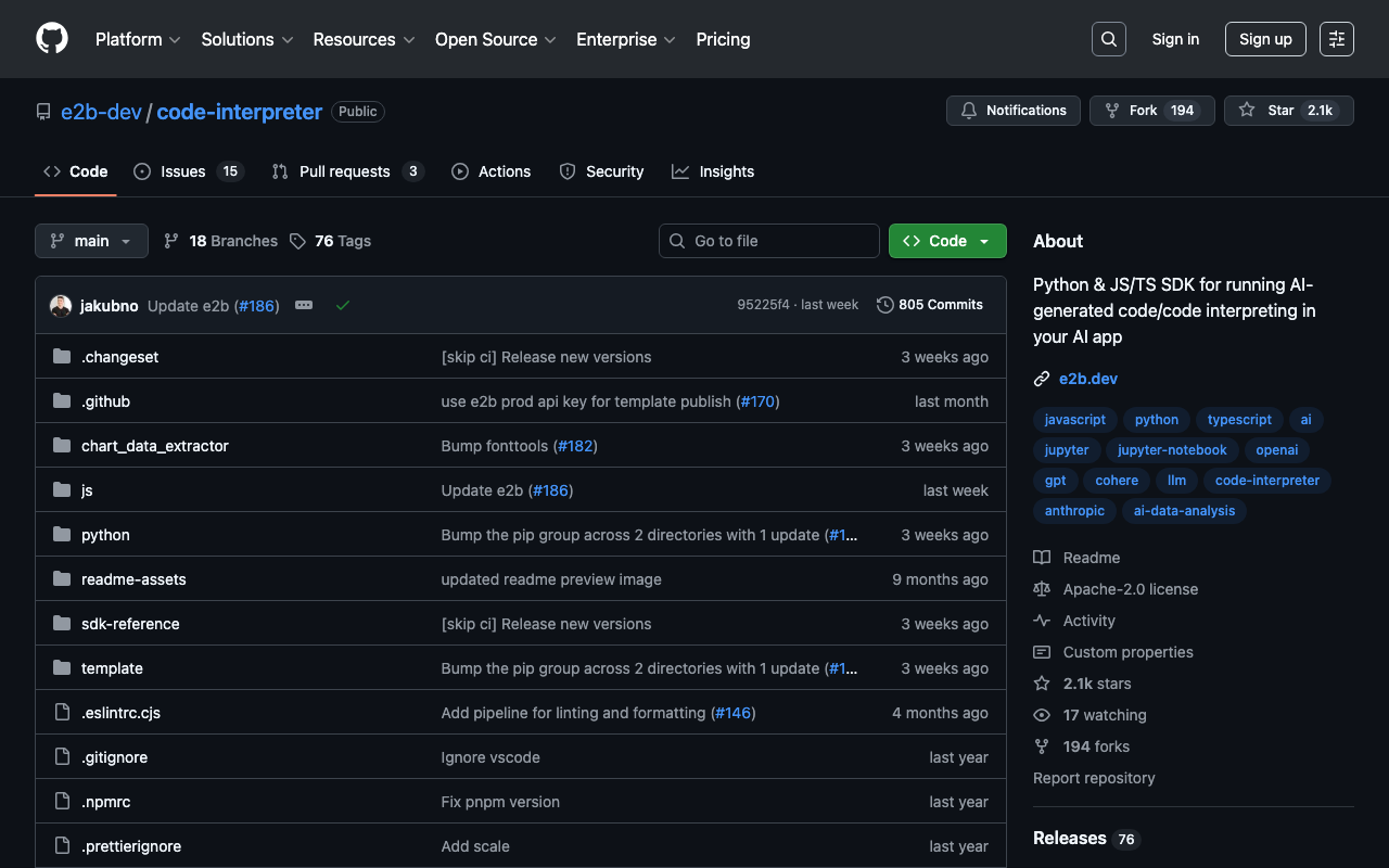 Python & JS/TS SDK for running AI-generated code/code interpreting in your AI app