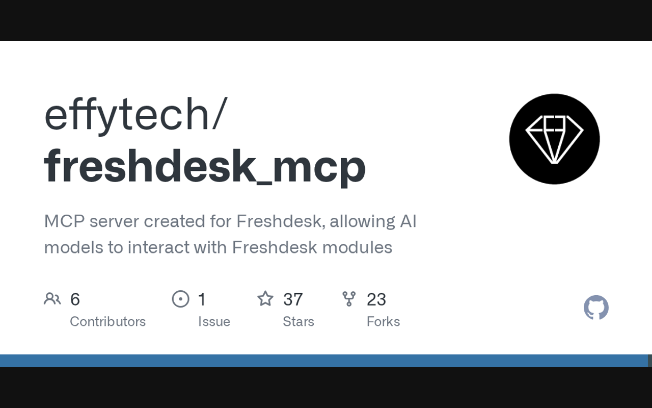 Extend Claude with effytech freshdesk mcp capabilitiesIntegrate external data into AI conversationsAutomate workflows combining Claude with specialized servicesBuild custom AI-powered development tools