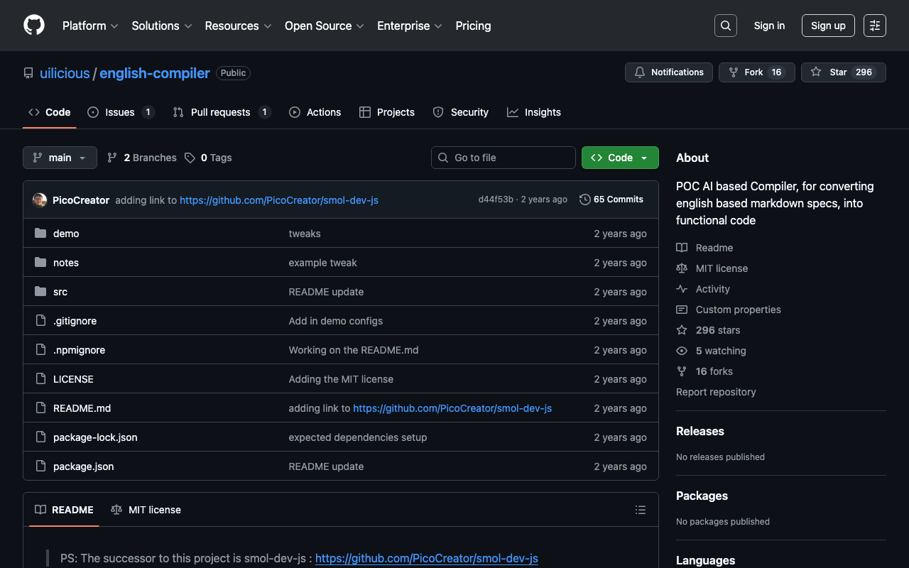 POC AI based Compiler, for converting english based markdown specs, into functional code