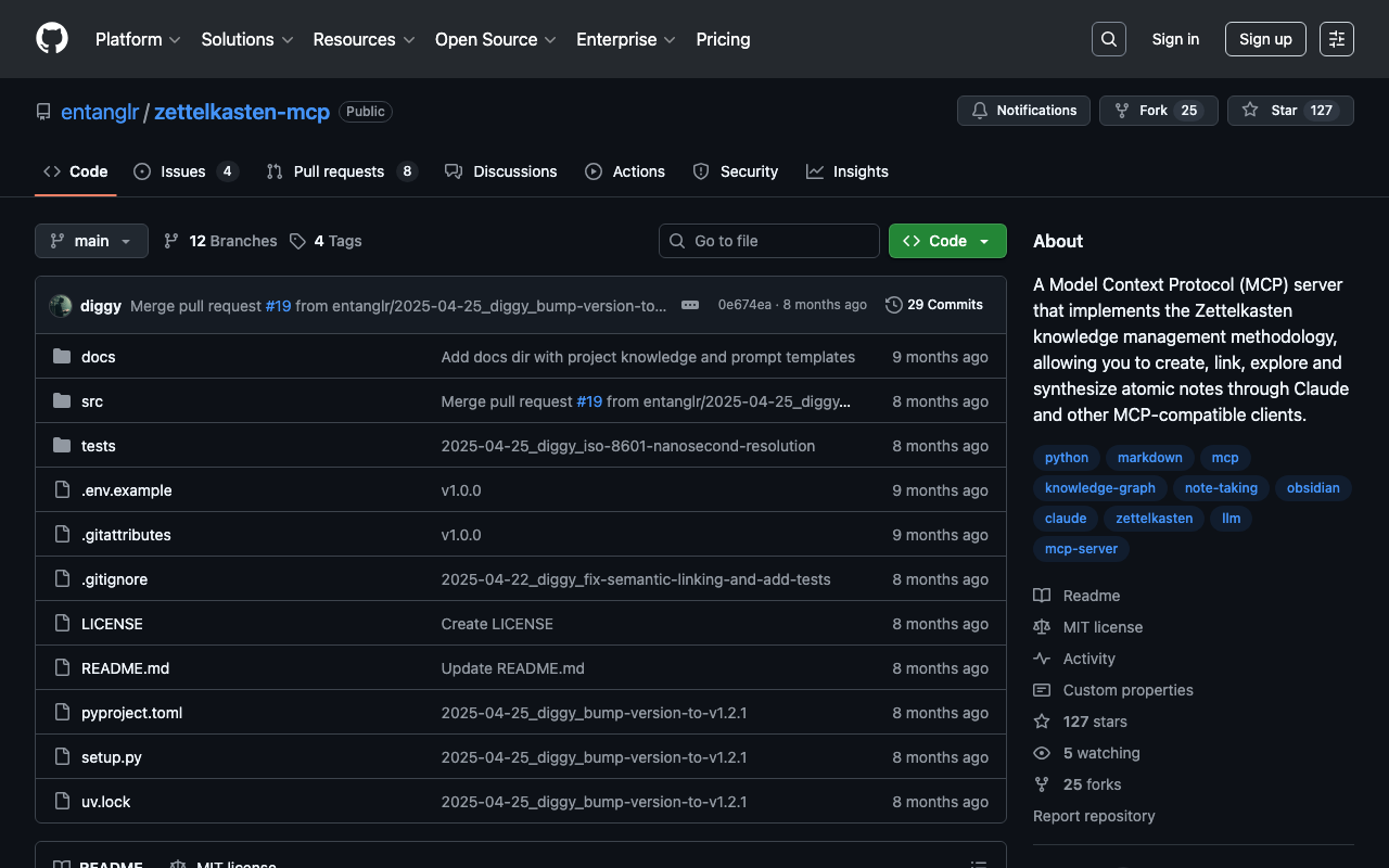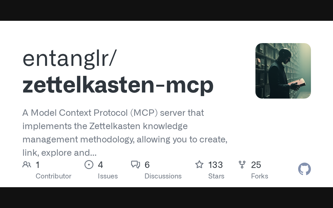 A Model Context Protocol (MCP) server that implements the Zettelkasten knowledge management methodology, allowing you to create, link, explore and synthesize atomic notes through Claude and other MCP-compatible clients.
