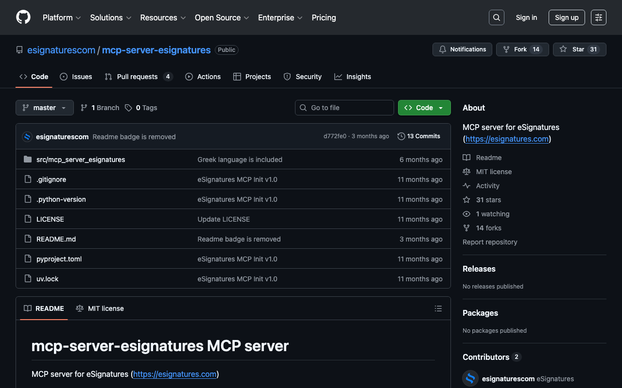 Extend Claude with esignaturescom mcp server esignatures capabilitiesIntegrate external data into AI conversationsAutomate workflows combining Claude with specialized servicesBuild custom AI-powered development tools