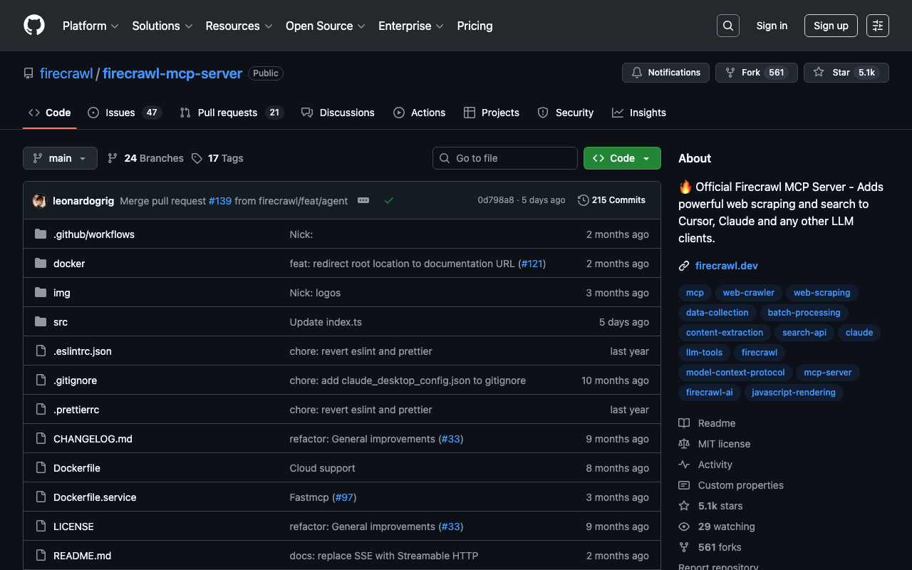 Extend Claude with firecrawl firecrawl mcp server capabilitiesIntegrate external data into AI conversationsAutomate workflows combining Claude with specialized servicesBuild custom AI-powered development tools