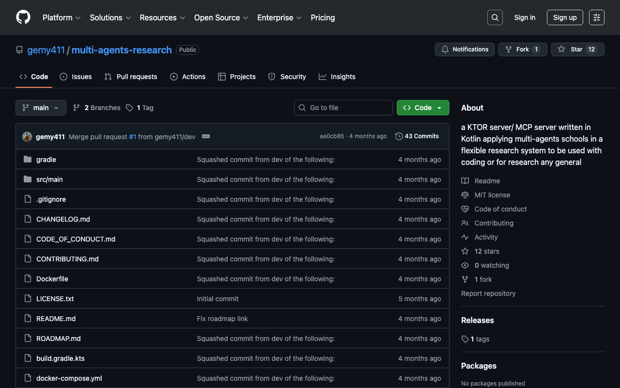 a KTOR server/ MCP server written in Kotlin applying multi-agents schools in a flexible research system to be used with coding or for research any general