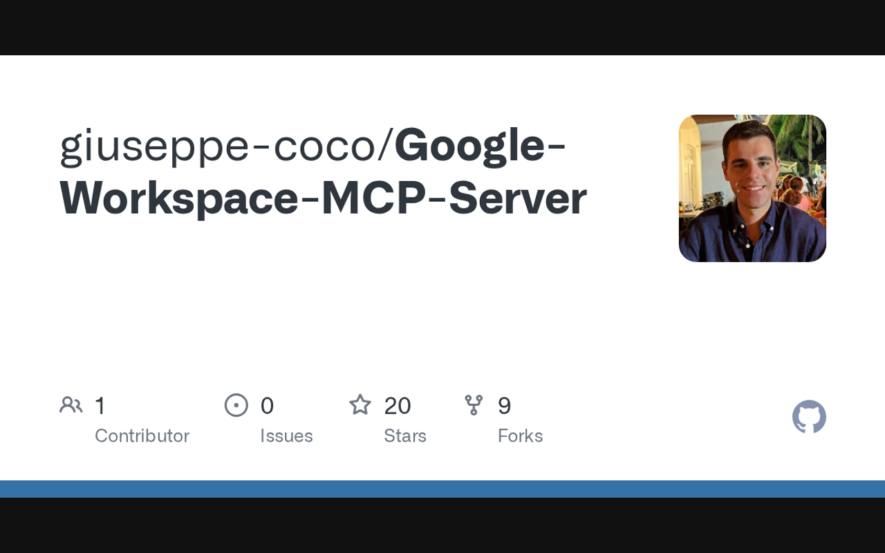 MCP server that extends Claude's capabilities with giuseppe coco/Google Workspace MCP Server integration. Enables seamless interaction between Claude and giuseppe coco/Google Workspace MCP Server services through the Model Context Protocol.