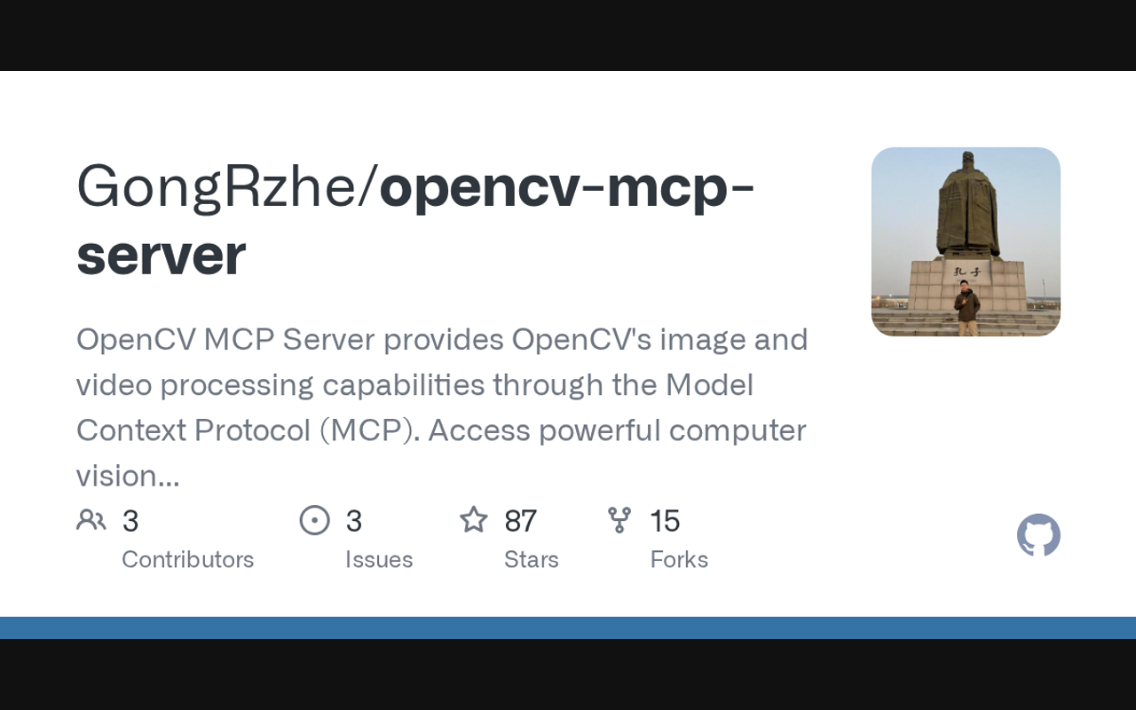 An MCP server providing OpenCV computer vision capabilities. This allows AI assistants and language models to access powerful computer vision tools.