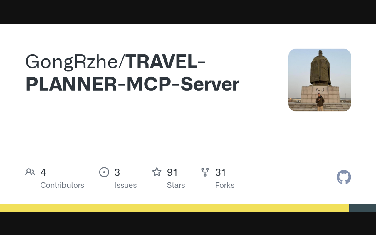 Travel planning and itinerary management server integrating with Google Maps API for location search, place details, and route calculations.