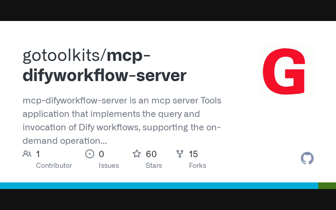 mcp-difyworkflow-server is an mcp server Tools application that implements the query and invocation of Dify workflows, supporting the on-demand operation of multiple custom Dify workflows.